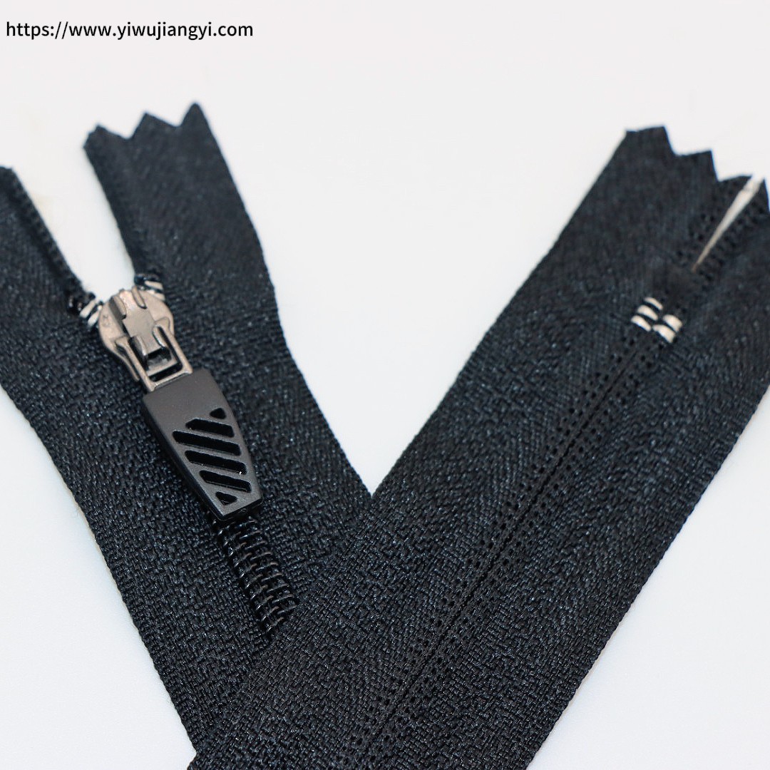 This Black Fashion Design Zipper features a black tape with a black slider with a diagonal design, making it simple and stylish overall. The zipper is smooth and durable, suitable for the design and production of clothing (e.g., jackets, jeans), bags, and other products, adding modern fashion elements to the products, helping to enhance their visual texture and user experience.