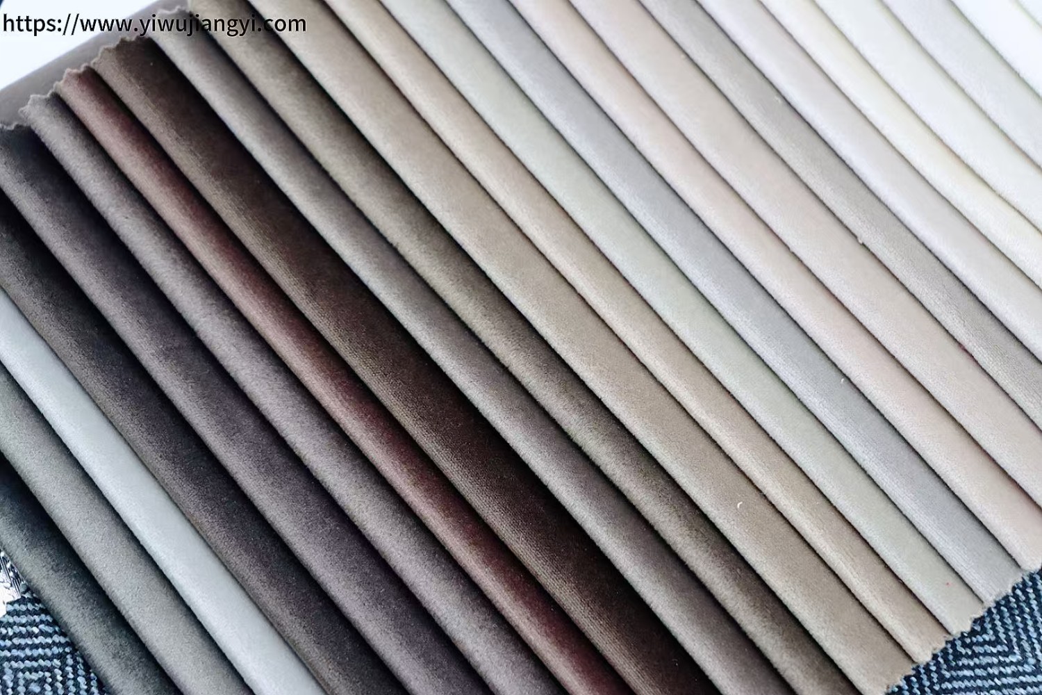 This Multi-color Velvet Fabric Swatch covers a range of neutral colors such as dark gray, brown gray, and beige. The fabric is smooth and soft, with good luster and drape. It is suitable for design and production reference in fields such as women's clothing (e.g., dresses, gowns), home furnishings (e.g., curtains, cushions), and accessories (e.g., handbags, hair accessories), providing manufacturers and designers with a wealth of color and texture choices to help create product series that are both luxurious and elegant.