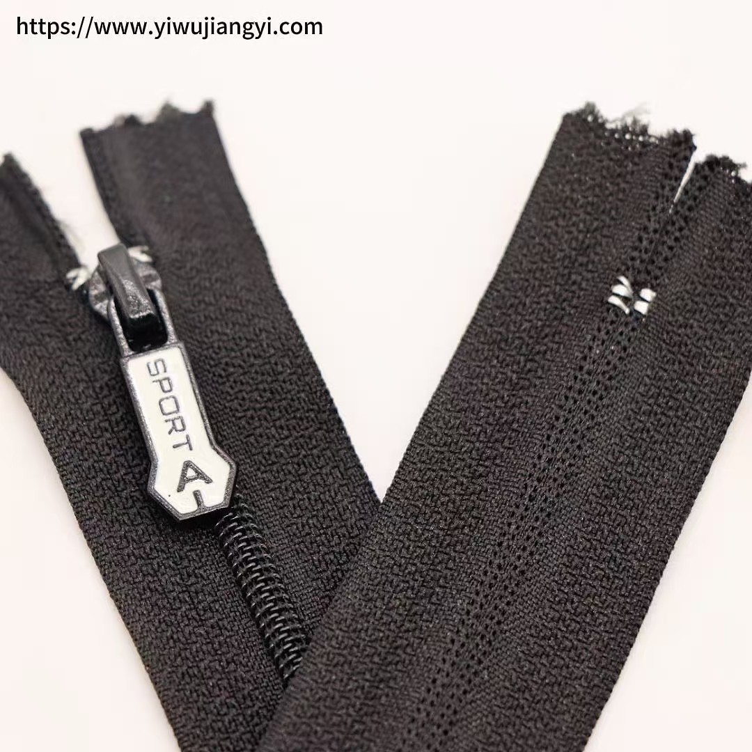 This "SPORT A" Black Sporty Zipper features a black tape with a black slider (printed with the "SPORT A" logo), making it simple and sporty in design. The zipper is smooth and durable, suitable for the design and production of sportswear (e.g., sports jackets, sports backpacks), outdoor equipment, and other products, adding a sporty style and practicality to the products, helping to enhance their functionality and brand recognition.