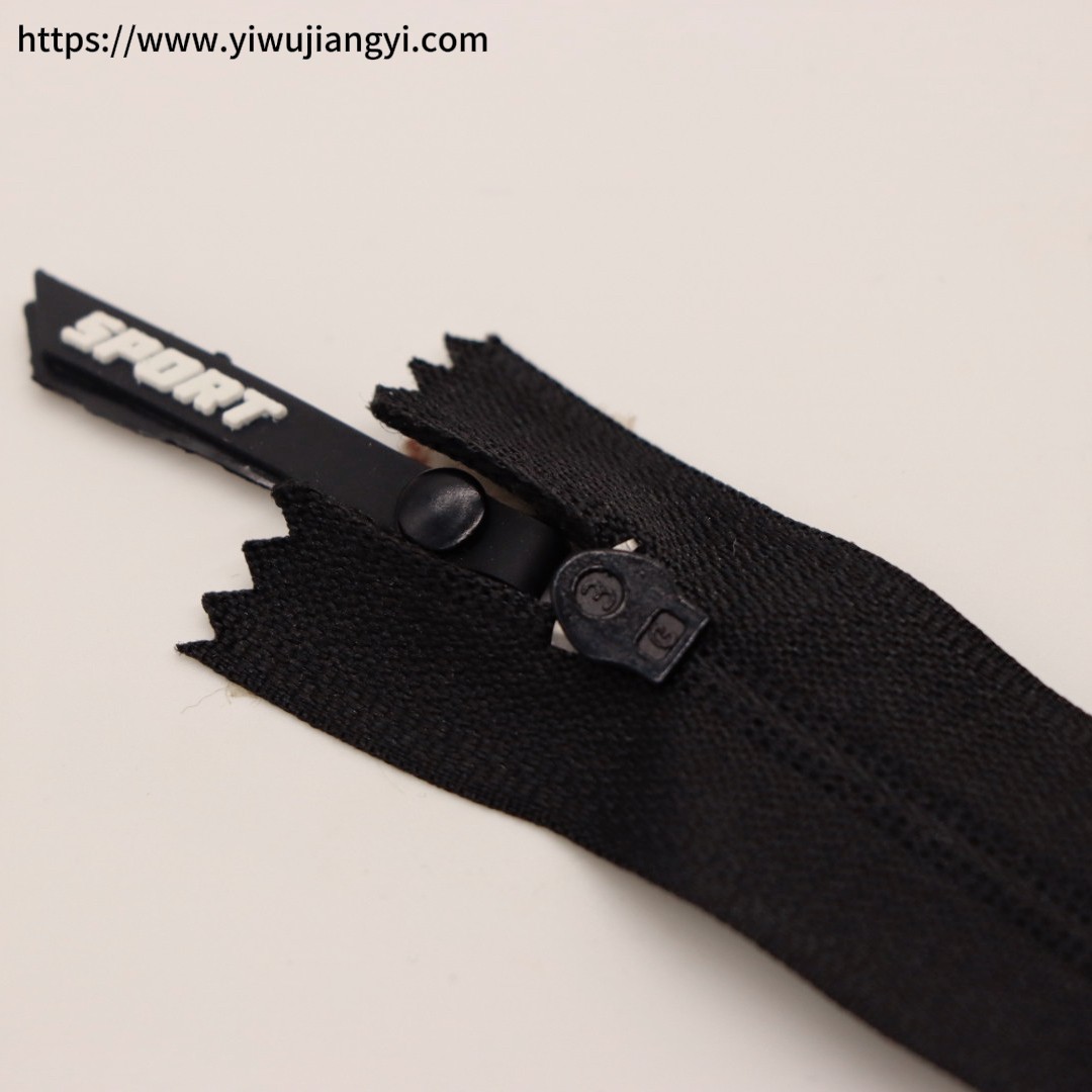 This "SPORT" Black Sporty Zipper features a black tape with a black slider printed with the "SPORT" logo, making it simple and sporty in design. The zipper is smooth and durable, suitable for the design and production of sportswear (e.g., sports jackets, sports pants), outdoor equipment, and other products, adding a sporty style and practicality to the products, helping to enhance their functionality and brand recognition.